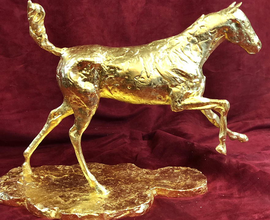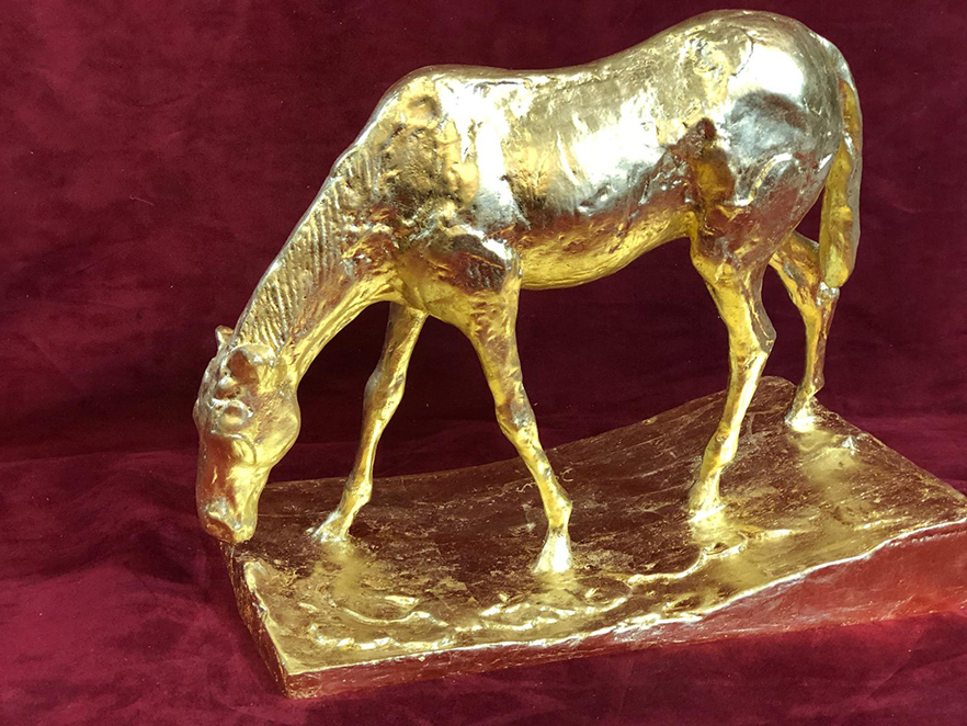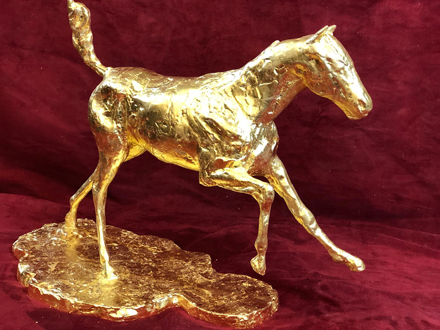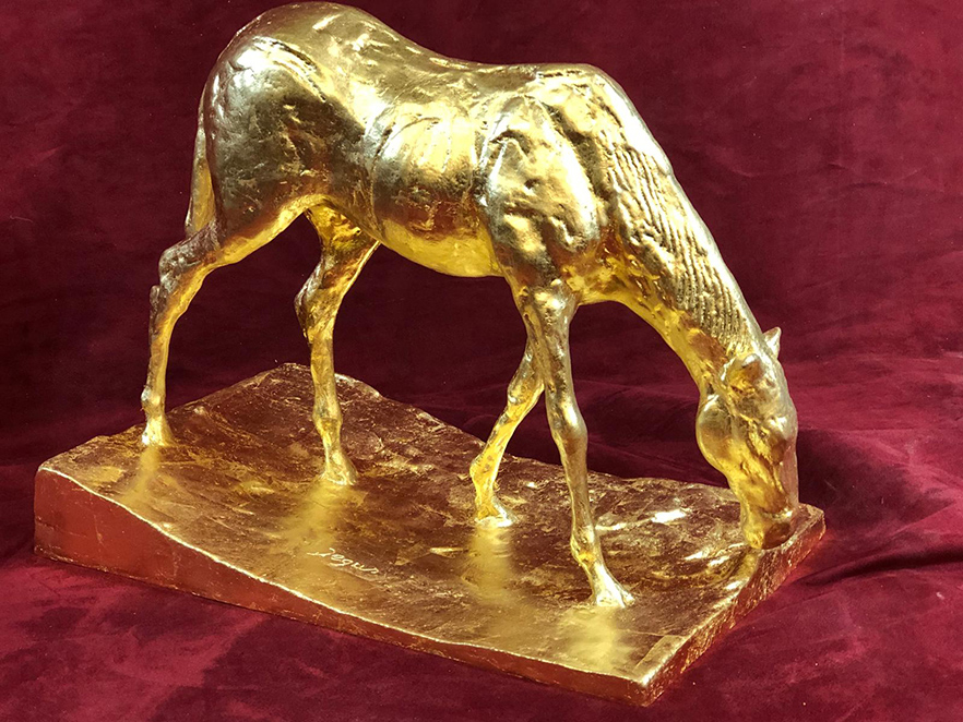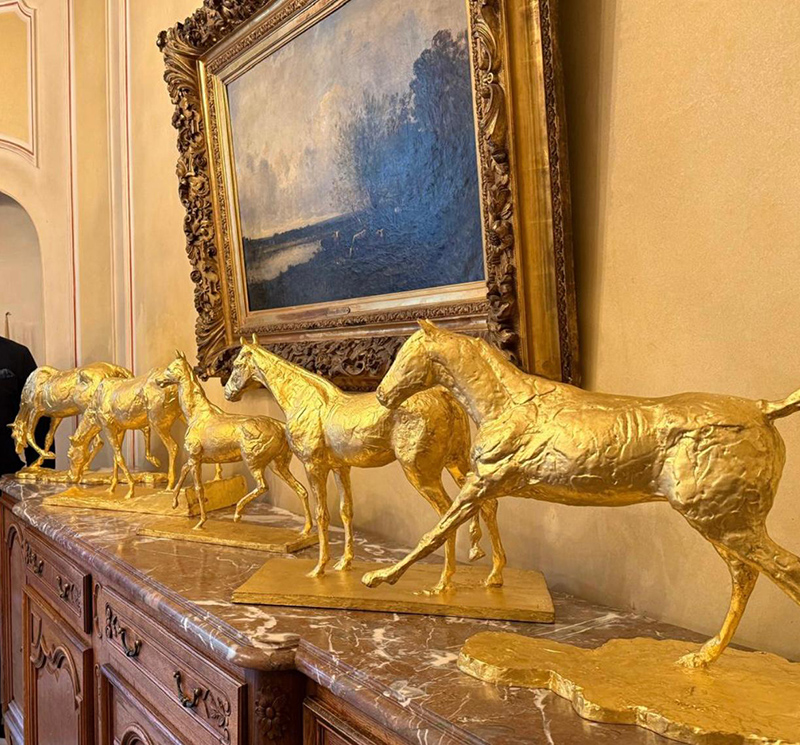 The horses numbered from I/V to V/V, gilded with 24-carat gold leaf, were gilded by the master gilder Alain Paillet in Beauchamps (France).