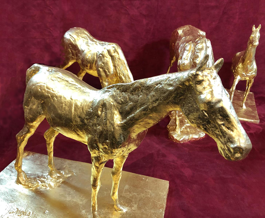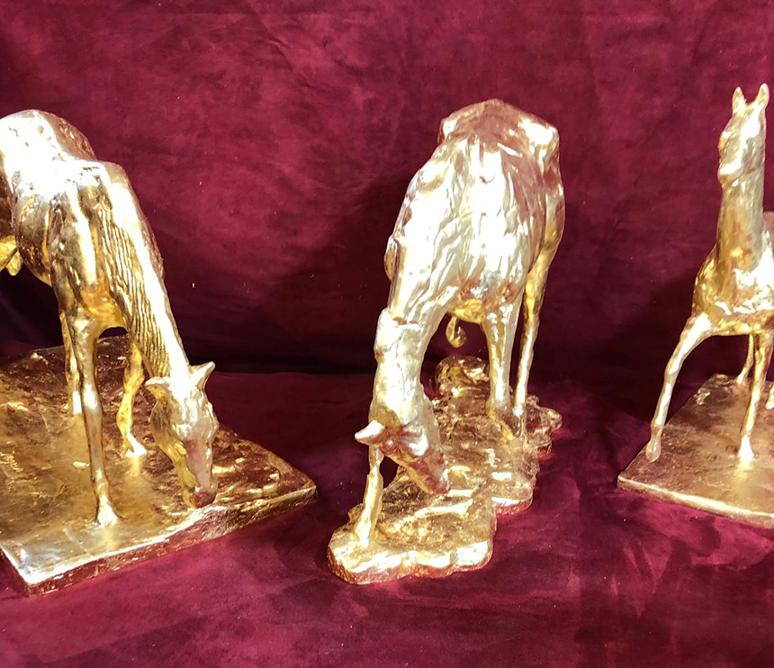 • 5 bronzes gilded with 24-carat gold leaf numbered from I to V
